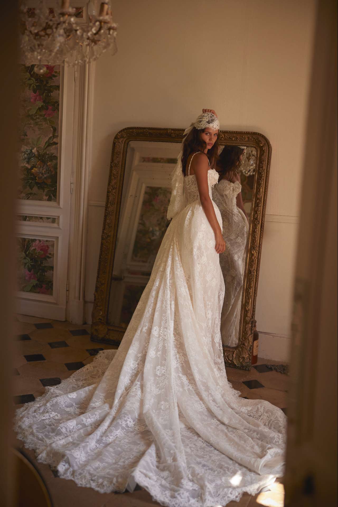 In salon o avem accesorizata si cu trena din dantela printesa( model LUMIERE)